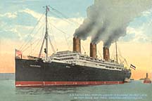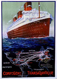 During the first half of the twentieth century opulent liners were built to serve the passengers travelling between Europe and North America. Bigger and better ships were built and competed to make the fastest crossing of the Atlantic. Shipping companies started to market their transatlantic passages as ‘pleasure cruises’ on board standards were improved with the emphasis on luxury rather than speed. New features were introduced, such as on board swimming pools on White Star Line’s Adriatic in 1907, and HAPAG Lloyd’s Amerika featured the first a la carte restaurant on a ship, along with the first electric passenger lifts ever to be built on board a passenger vessel.